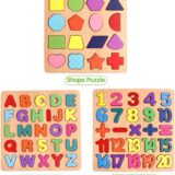 bp 2- Alphanumeric Graphics Cognitive: 20 numbers puzzles, 5 calculation symbols, 26 English alphabet puzzles,16 shape puzzles, Bright colors and durable natural Wood Pieces, cultivate baby’s Alphanumeric graphics cognitive and memory ability.